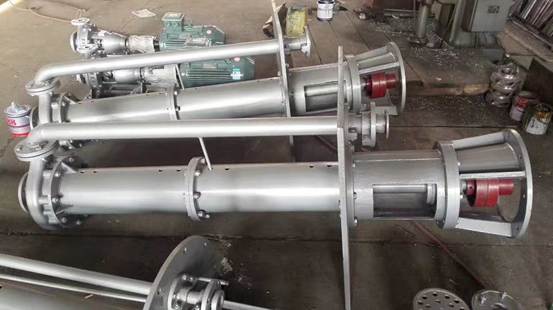 液下泵是立式單級單吸離心泵結構,該系列泵為半開式葉輪,在葉輪 吸入邊延伸處設有攪拌葉片,并在前蓋上裝有能粉碎纖維雜草的刀具,工作中 回流攪拌,機械破碎,防止堵塞。